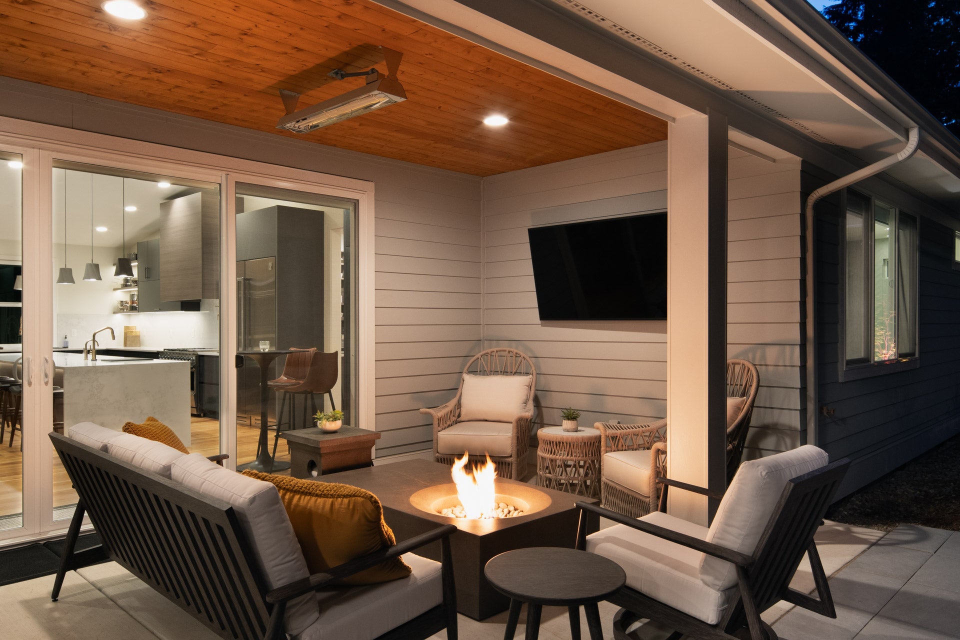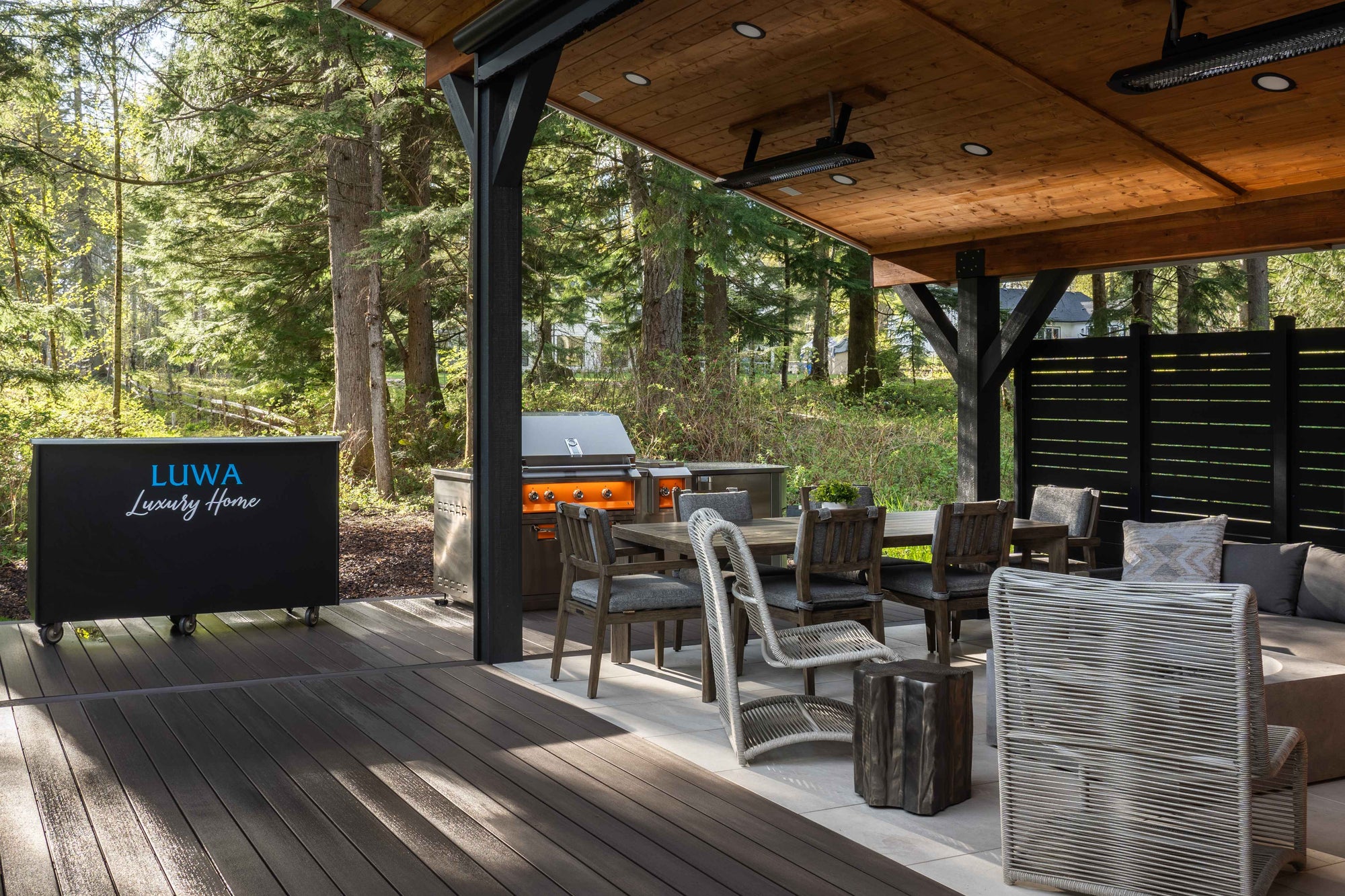 Welcome to the outdoor living area at the Luwa Luxury Home, where relaxation and entertainment merge seamlessly. Our outdoor space is designed for luxurious comfort and enjoyment. Featuring stylish furnishing, cozy seating arrangements, and a serene ambiance, its the perfect spot to unwind or socialize with friends and family. Enhancing the experience, you'll find the inviting warmth of the Kindred Firebowl, ensuring every moment outdoors is a delight.