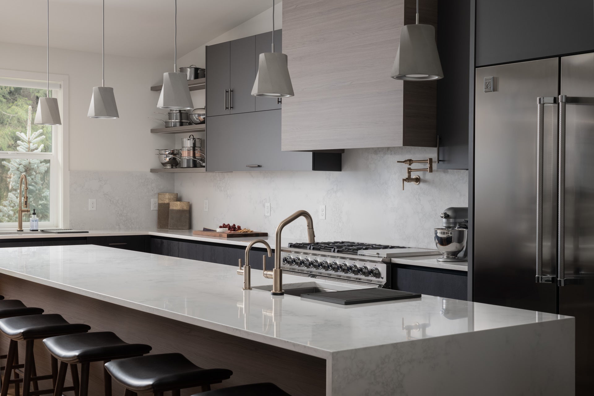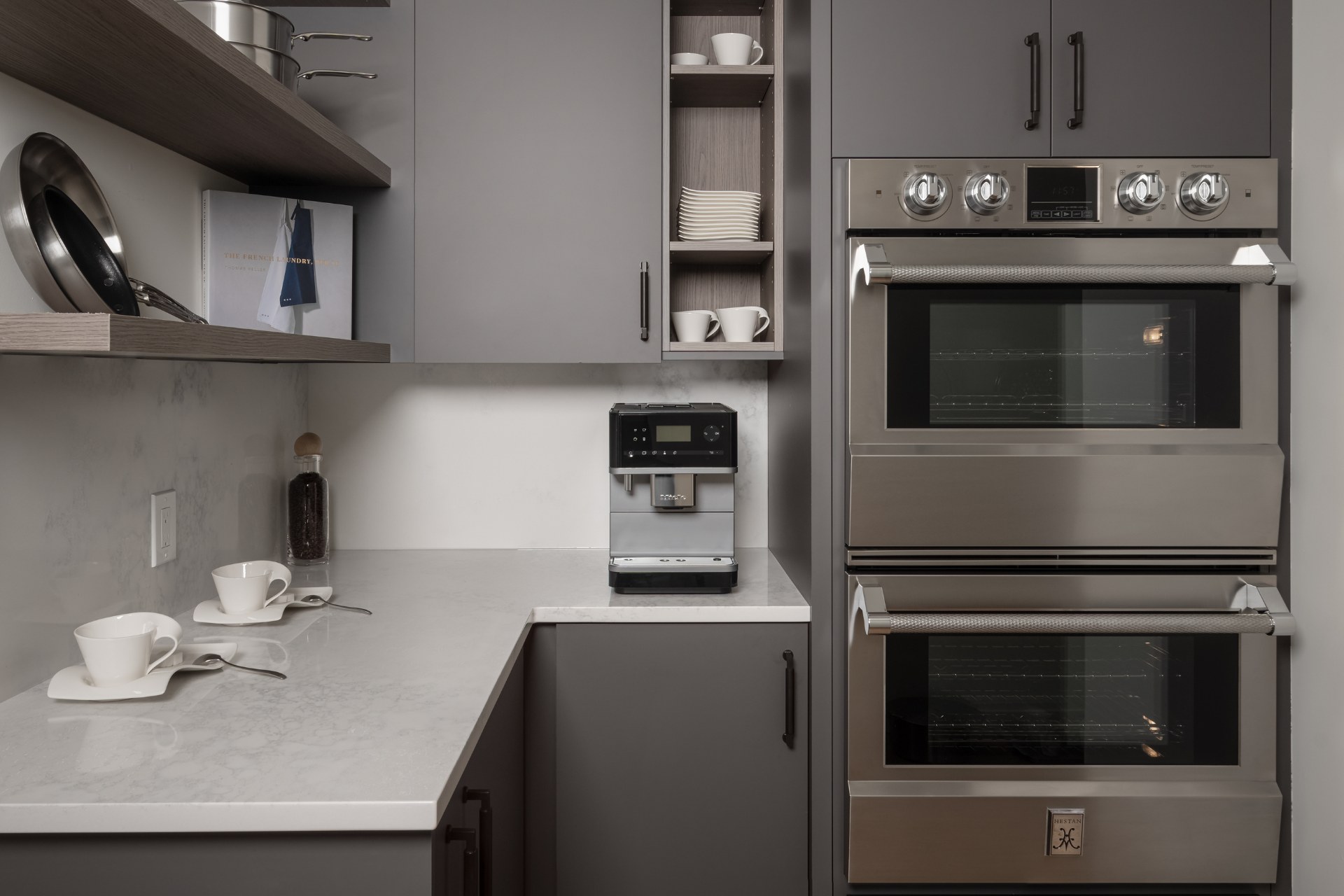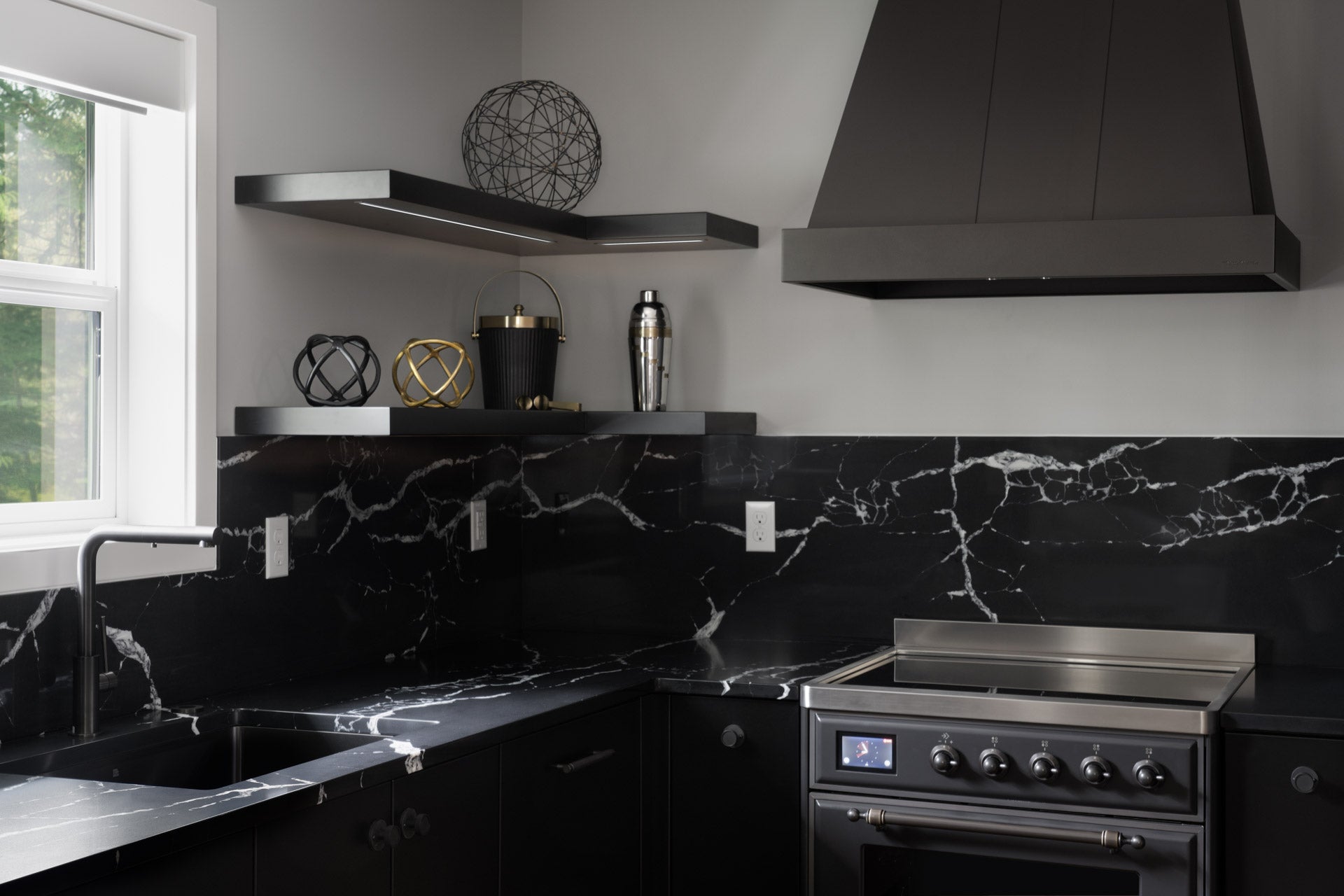 Experience luxury when you enter the Luwa Luxury Home kitchen, featuring collaborations with world-class brands. This kitchen strikes a harmonious blend of elegance and practicality, combining top-tier appliances like Hestan and Vent-A-Hood with artisan countertops and custom cabinets.